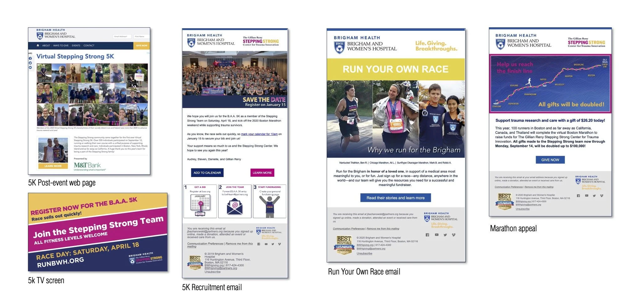 I held the role as the lead designer and supported digital strategist for the Stepping Strong Marathon Program at Brigham and Women’s Hospital, helping shape the campaign’s visual identity and digital presence across multiple seasons and race formats. My work spanned web design, email marketing, content strategy, and cross-channel branding—supporting fundraising goals and community engagement through consistent, emotionally resonant storytelling.